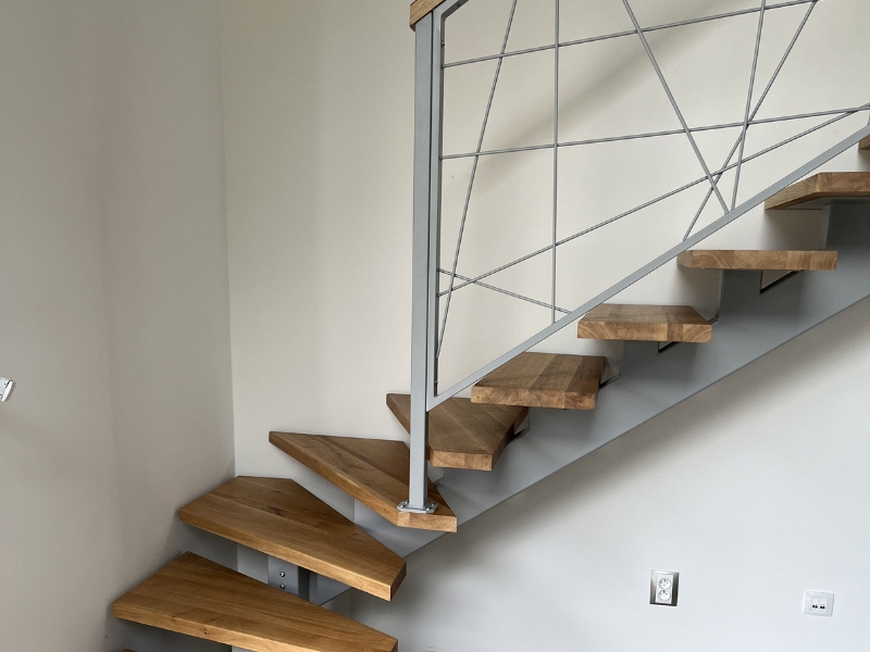 Interiérové schodiště se skládá z masivních ocelových boku, které mají povrchovou úpravu podle vzorníku RAL.
